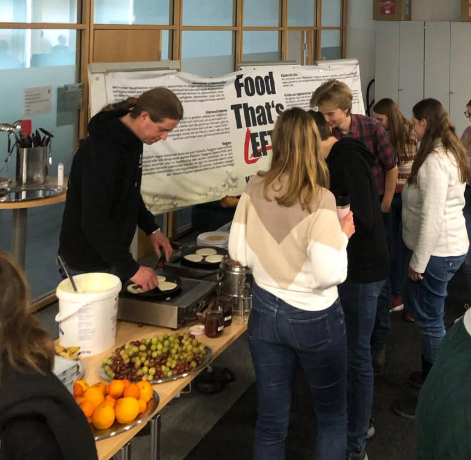 Nach dem Keynote-Vortrag ließen sich die Teilnehmenden zunächst von Hugh mit gerettetem Obst und frisch gebackenen Pancakes verpflegen. Danke, lieber Hugh.